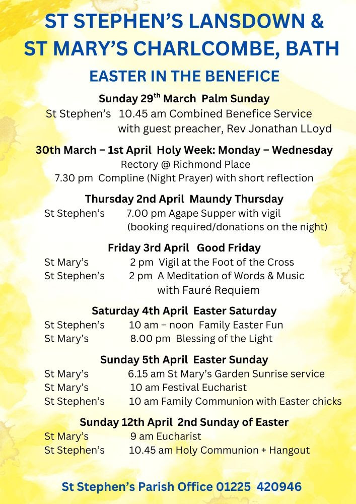 There are lots of events to enjoy in both St Mary's and our sister church of St Stephen's, Lansdown. What, when and where can be found in both the Calendar and in The Beneficial (our regular summary of news and events at both churches).